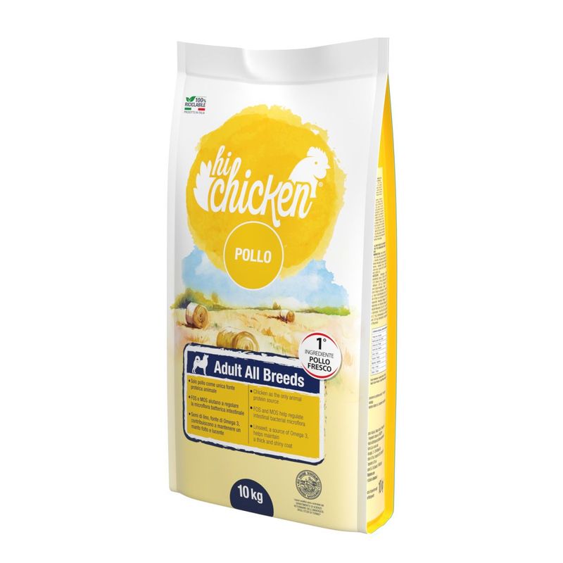 Scegli Hi Chicken Dog Adult Pollo Fresco per garantire l'assunzione di tutte le sostanze nutritive necessarie per la salute e il benessere generale del tuo amico peloso.