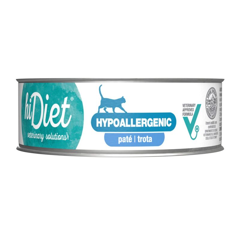 Hi Diet Hypoallergenic rappresenta una linea di alimenti attentamente sviluppata dai veterinari per rispondere alle esigenze nutrizionali specifiche associate a condizioni particolari come allergie alimentari, intolleranze o patologie dermatologiche e gastrointestinali nei gatti. La formulazione di questa linea è stata studiata con attenzione per offrire un supporto nutrizionale mirato, contribuendo a gestire e alleviare i sintomi legati a tali condizioni.