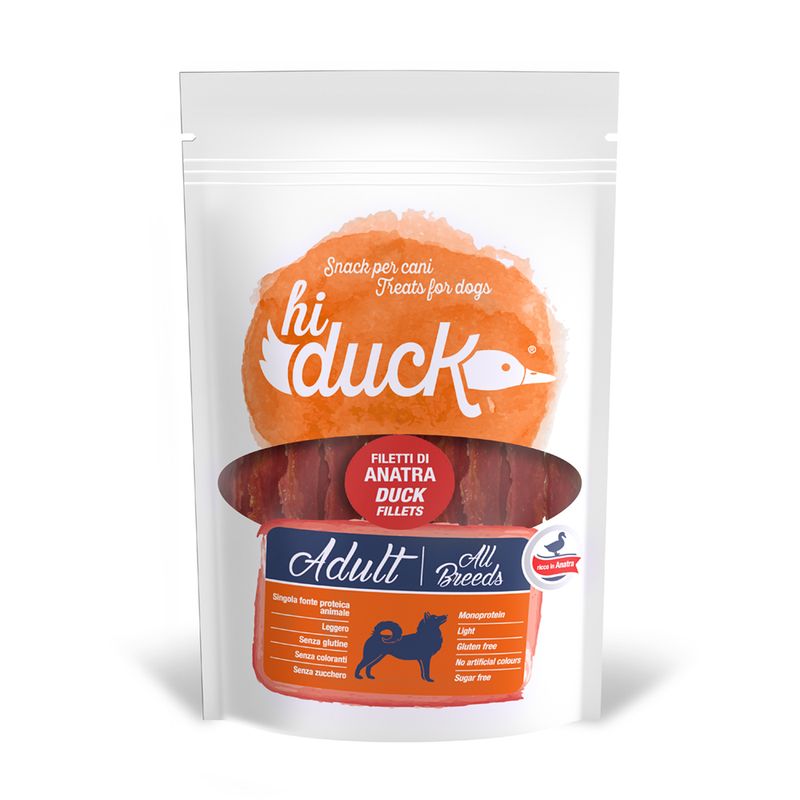 Stai cercando una coccola per il tuo amico peloso? Delizialo con un fuori pasto sano e delizioso della linea Hi Duck, snack gustoso e sano al gusto anatra. Che bontà!