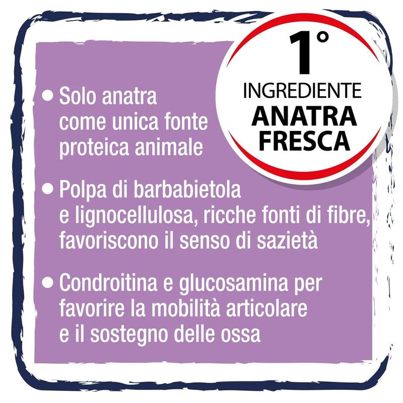 • Contiene carne fresca d'anatra come fonte principale di proteina animale.
