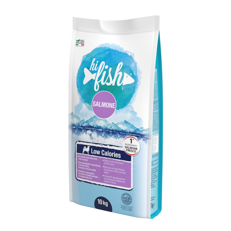 Attenzione! Hi Fish Dog Fresco Low Calories Salmone si rinnova con nuovo packaging e nuova formulazione. Potresti ricevere il nuovo o il vecchio pack a seconda della disponibilità a magazzino.