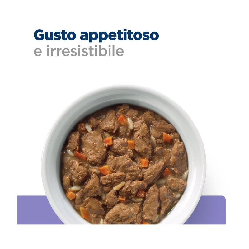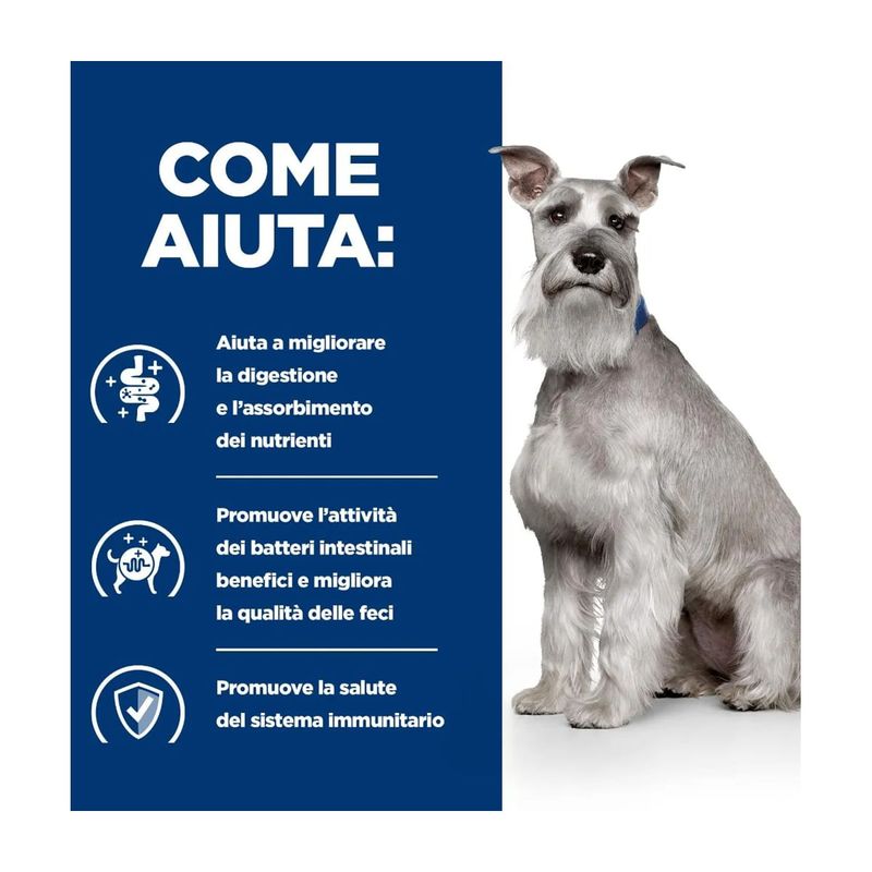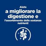 Hill’s Presciption Diet Digestive Care i/d Low Fat Dog Adult Mini Pollo è un alimento umido dietetico, appositamente formulato dai nutrizionisti e veterinari Hill's per gestire la cura dell'apparato digerente nei cani adulti di taglia piccola con un basso contenuto di grassi. Questa prelibatezza presenta gustosi bocconcini in salsa ed è realizzata con pollo come fonte di proteina animale di alta qualità e verdure aggiunte, offrendo un gusto irresistibile che il tuo cane adorerà. La consistenza e il gusto delizioso sono studiati per attirare anche i palati più esigenti. Questo alimento contiene livelli aumentati di sodio e potassio, nonché ingredienti altamente digeribili per favorire una digestione sana. La formula include una miscela prebiotica unica e zenzero per supportare la salute digestiva. Gli acidi grassi Omega-3 e Omega-6 presenti nella formula contribuiscono a ridurre l'infiammazione e a migliorare la salute della pelle e del mantello, mentre gli antiossidanti clinicamente testati aiutano a sostenere un sistema immunitario forte e sano. Realizzato con la tecnologia esclusiva di Hill's ActivBiome+, una speciale miscela di fibre prebiotiche, questo alimento è clinicamente testato per nutrire rapidamente il microbioma intestinale, supportando la qualità ottimale delle feci e la salute complessiva dell'apparato digerente. Grazie a questa tecnologia avanzata, l'alimento promuove un equilibrio ottimale della flora intestinale, garantendo una digestione efficiente e un assorbimento ottimale dei nutrienti.