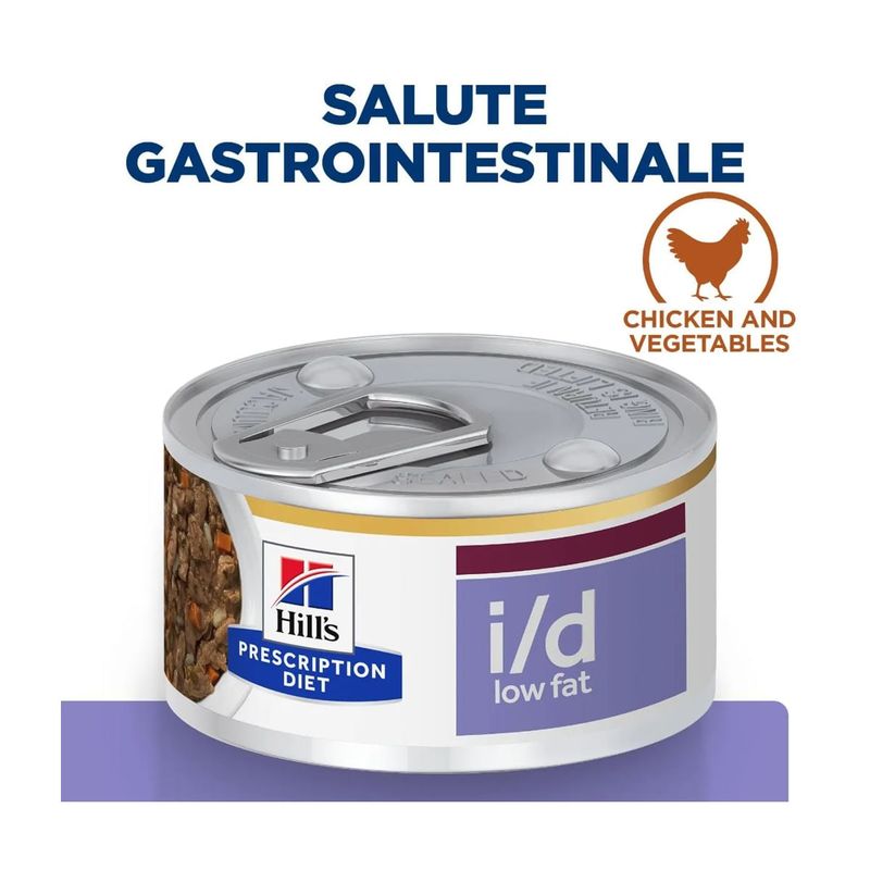 Hill’s Presciption Diet Digestive Care i/d Low Fat Dog Adult Mini Pollo fornisce una nutrizione bilanciata e specifica per cani adulti di piccola taglia con esigenze dietetiche particolari, garantendo un'alimentazione di alta qualità e un gusto che il tuo amico a quattro zampe adorerà.