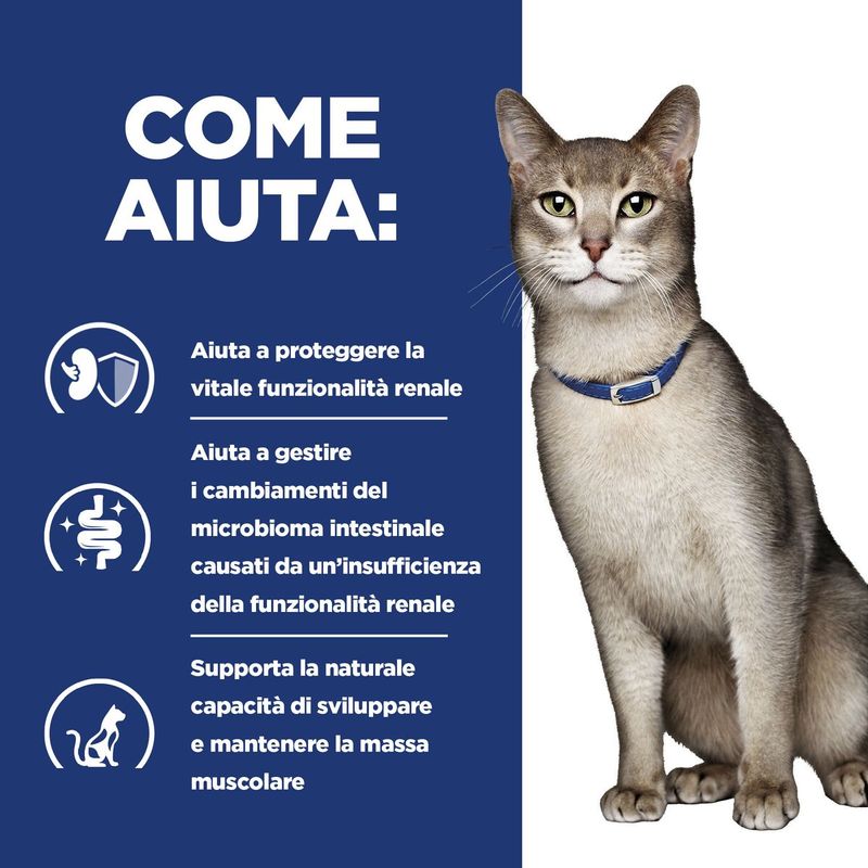 Consulta il tuo veterinario per ulteriori informazioni su come questo alimento può contribuire a migliorare la qualità della vita del tuo gatto affetto da insufficienza renale.