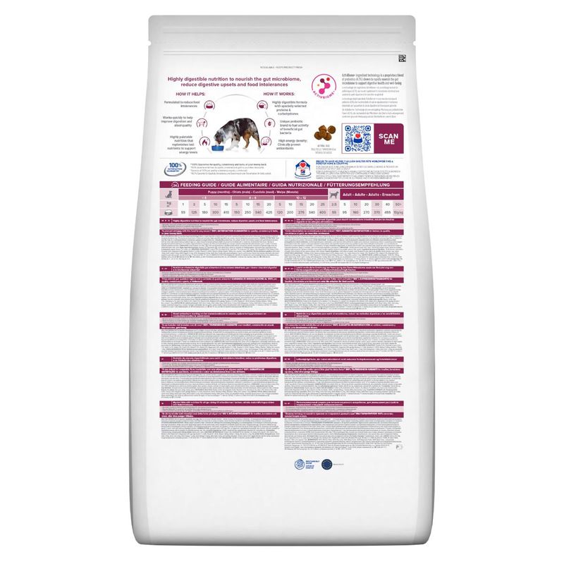 Hill's Prescription Diet i/d Digestive Care Sensitive Alimento Secco per Cani con Uova e Riso è un alimento secco dietetico completo altamente digeribile per cani adulti, specificamente formulato per la riduzione delle intolleranze agli ingredienti e ai nutrienti e per la riduzione dei disordini di assorbimento intestinale nei cani. Questo alimento presenta un livello aumentato di sodio e potassio, ingredienti altamente digeribili, e contiene fonti selezionate di carboidrati e proteine. Realizzato con la tecnologia esclusiva di Hill's ActivBiome+, una speciale miscela di fibre prebiotiche, questo alimento è clinicamente testato per nutrire rapidamente il microbioma intestinale, supportando la qualità ottimale delle feci e la salute complessiva dell'apparato digerente. Questo prodotto è a base di uova e riso, garantendo un gusto irresistibile che il tuo cane adorerà. La formula altamente digeribile con proteine e carboidrati appositamente selezionati contribuisce a ridurre le intolleranze alimentari e a migliorare la digestione. La miscela prebiotica unica alimenta l'attività dei batteri intestinali benefici, promuovendo una sana flora intestinale. Inoltre, questo mangime presenta una densità energetica elevata, che supporta i livelli di energia del tuo cane, e antiossidanti clinicamente testati, che contribuiscono a sostenere il sistema immunitario. Questo alimento è formulato per ridurre le intolleranze alimentari, garantendo una nutrizione equilibrata e sicura per il tuo amico a quattro zampe. Funziona rapidamente per migliorare la digestione e la qualità delle feci, offrendo un sollievo immediato ai cani che soffrono di disturbi digestivi.