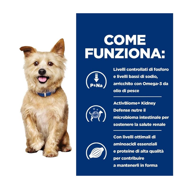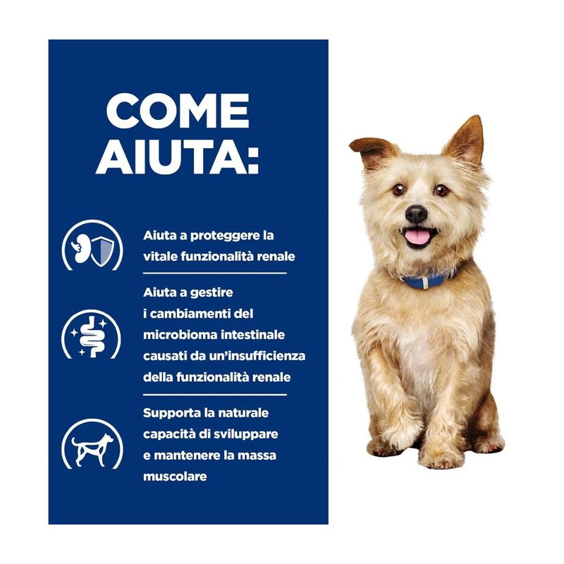 Le malattie renali rappresentano una condizione progressiva e stressante che, se non trattata correttamente, può causare dolore e disagio. I prodotti renali Hill's aiutano a prolungare la vita e migliorare significativamente la qualità della vita del tuo cane, riducendo la progressione della malattia e la sintomatologia.