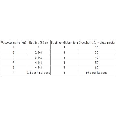 N.B. Il prodotto è disponibile in formato busta multipack da 12x85G è contiene 6 buste al gusto Pollo, 3 buste al gusto Pesce dell’Oceano e 3 buste al gusto Manzo.