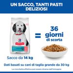 Hill's Science Plan Hypoallergenic Adult Large Breed alimento secco per cani al Salmone è un cibo secco formulato per soddisfare i fabbisogni nutrizionali ed energetici del cane adulto di taglia grande, a partire dai 25kg di peso, al gusto salmone, è appositamente formulato per quei cani soggetti a disturbi intestinali infatti risulta una formulazione delicata per lo stomaco perché contiene ingrediente altamente digeribili e si prende anche cura del manto grazie agli Omega-3 e gli Omega-6.
