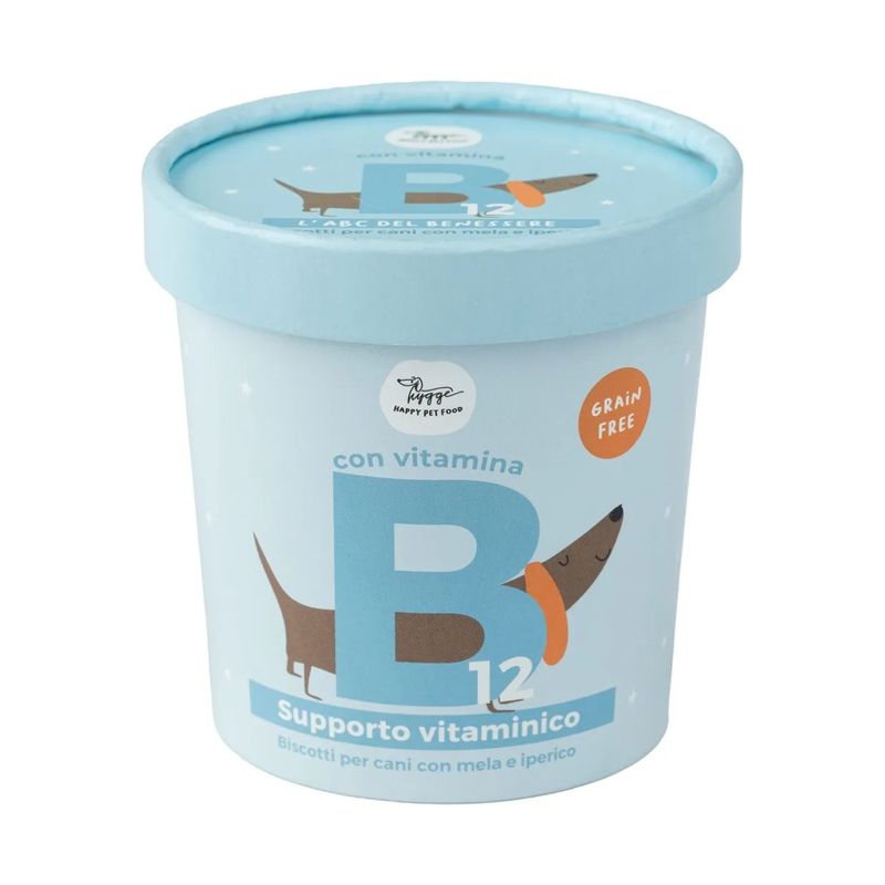 Il Hygge Dog Biscotto Grain Free con Vitamina B12 è uno snack funzionale appartenente alla categoria snack studiato per offrire un vero e proprio supporto vitaminico al tuo cane. Perfetto per cani di tutte le razze ed età, questo biscotto è pensato per supportare le funzioni cognitive e digestive grazie alla presenza della vitamina B12. Arricchito con mela e iperico, noto per le sue proprietà rilassanti, è ideale anche per aiutare il tuo amico a quattro zampe nei momenti di stress o agitazione. La formula include ingredienti naturali e nutrienti come farina di riso, piselli e ceci, che rendono lo snack gustoso e altamente digeribile. L’apporto nutrizionale è bilanciato e adatto anche ai cani più sensibili grazie all’assenza di cereali, coloranti e conservanti.