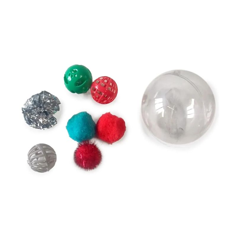 Il Kit Gioco Gatto Winter Pallina Mix è il regalo perfetto per far vivere al tuo gatto tutta la magia delle feste. Questo set natalizio combina diversi giochi stimolanti, pensati per offrire momenti di puro divertimento, attività fisica e benessere sensoriale al tuo micio. Adatto a gatti adulti di tutte le razze, unisce palline di diverse texture con un peluche irresistibile, il tutto presentato in un’elegante sfera trasparente con fiocco rosso. Il cuore del gioco è rappresentato dalle palline natalizie Winter Mix, una selezione di sette palline di vario tipo, realizzate in materiali diversi per stimolare curiosità e interazione. Il mix comprende: palline rigide in plastica nei toni natalizi del rosso, verde e grigio, ideali per essere inseguite; palline morbide in tessuto rosso e azzurro, perfette da afferrare e lanciare; una pallina rossa con riflessi luccicanti e una pallina argentata effetto festivo, capaci di catturare l'attenzione del tuo gatto con suoni e movimenti leggeri. è una selezione festosa e divertente pensata per regalare al tuo micio momenti di gioco durante le festività natalizie. Ogni elemento è pensato per stimolare l’istinto naturale del gatto attraverso suoni, movimenti e consistenze diverse, in un mix di giochi tradizionali e natalizi, racchiusi in una simpatica sfera trasparente decorativa con fiocco rosso. All’interno del Kit Natale Pallina Winter trovi un topolino in peluche verde con dettagli rosa, che richiama l’aspetto di una preda e stimola la curiosità e l’agilità del gatto. C’è poi una pallina in plastica bicolore rossa e bianca, perfetta per rotolare, inseguire e far tintinnare. Il kit include anche una pallina rossa pelosa con riflessi luccicanti, che cattura la vista e stimola il gioco tattile. Infine, il protagonista natalizio: un peluche a forma di omino pan di zenzero, decorato con fiocco rosso e dettagli ricamati, irresistibile anche per i gatti più esigenti.