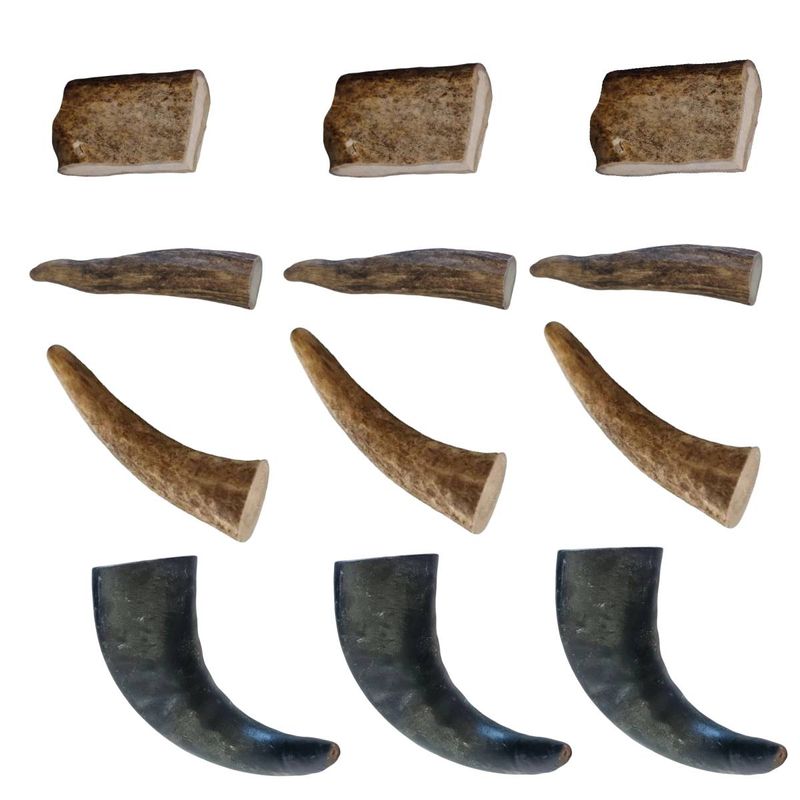 N.B. Il prodotto è disponibile in formato 12PZ: 3x Corno di Cervo Small, 3x Corno di Renna Small, 3x Corno di Bufalo Small, 3x Corno di Alce Small.