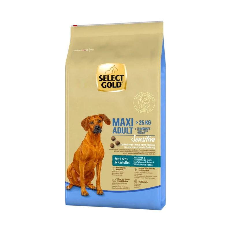 Scegli la qualità che fa davvero la differenza con il Kit Multigusto 2x12KG Select Gold Sensitive Maxi Dog Cavallo+Salmone il tuo gigante buono ti ringrazierà con una scodinzolata extra!