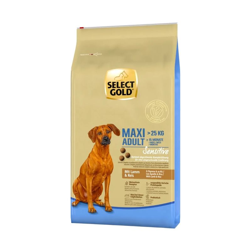 Sorprendi il tuo amico a quattro zampe con il Kit Multigusto 2x12KG Select Gold Sensitive Maxi Dog due gusti, un solo obiettivo: il suo benessere!
