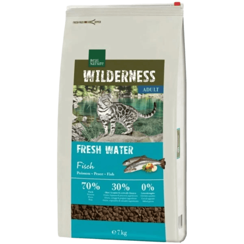 Kit Multigusto 3x7KG Real Nature Wilderness Cat Fresh Water è un alimento secco completo e bilanciato pensato per soddisfare le esigenze dei gatti adulti. Le tre varianti incluse – Fresh Water, Pure Beef e True Country – si ispirano alla varietà e alla ricchezza della natura, per offrire un'esperienza di gusto selvaggia e sempre diversa. La variante Fresh Water è a base di salmone di alta qualità, una fonte naturale di acidi grassi Omega-3 che favoriscono una pelle sana e un pelo lucente. Pure Beef è ricco di carne di manzo, per un apporto proteico robusto e un gusto deciso, mentre True Country unisce la carne di pollo ad ingredienti funzionali, garantendo proteine facilmente digeribili e un sapore che conquista anche i gatti più esigenti. Tutte le ricette sono grain free, formulate senza conservanti, coloranti o aromi artificiali, e arricchite con vitamine, minerali, bacche ed erbe, per sostenere il sistema immunitario, la digestione e il benessere complessivo del tuo gatto. La consistenza croccante e il profumo naturale rendono queste crocchette irresistibili anche per i mici dal palato più fine.