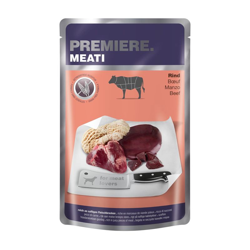 Scegli il Kit Risparmio 10x500G Premiere Meati Dog Busta per offrire al tuo cane un pasto umido completo, naturale e ricco di proteine di alta qualità