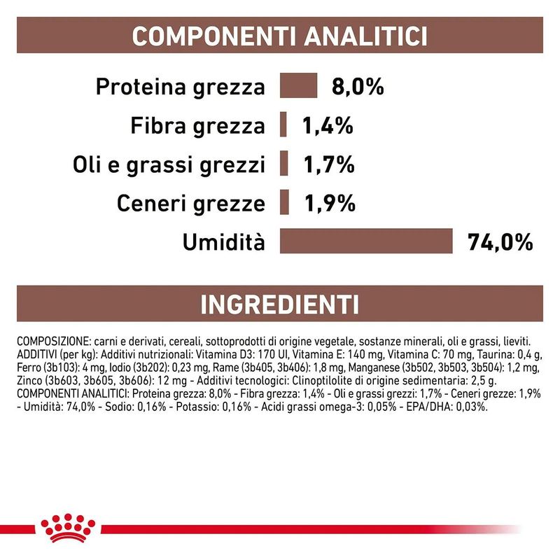 • Alimento dietetico umido studiato per cani adulti con esigenze digestive particolari e tendenti al sovrappeso.