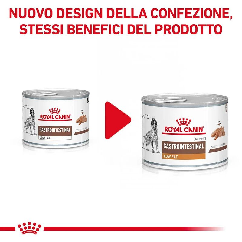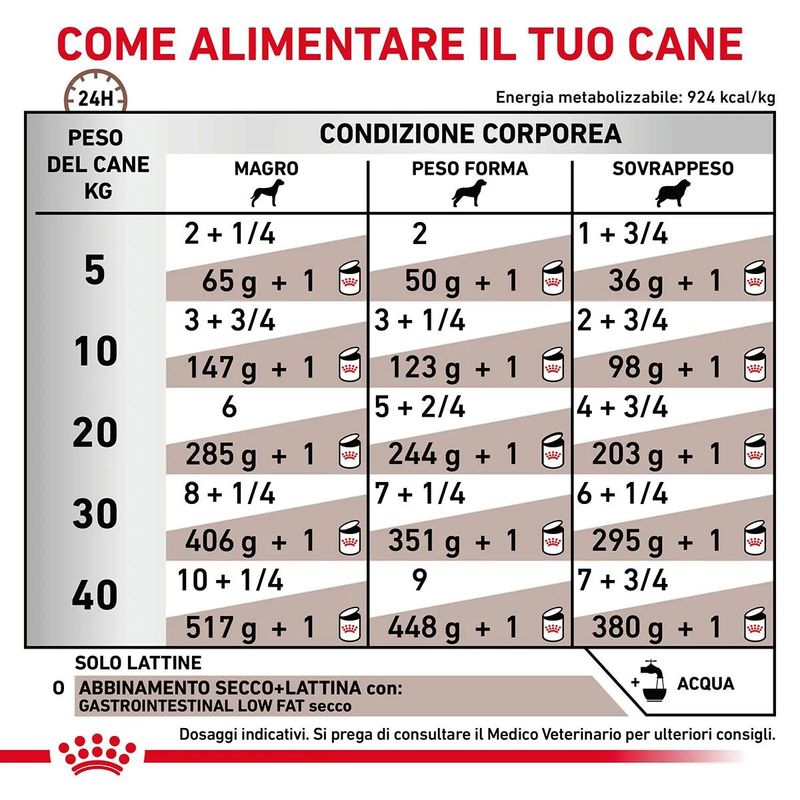 Il Kit Risparmio 12x200G Royal Canin V-Diet Dog Gastrointestinal Low Fat è un alimento dietetico umido studiato appositamente per i cani adulti. Il paté è specifico in caso di sensibilità gastrointestinale o altre condizioni che richiedono una restrizione dei grassi. Il ridotto apporto di grassi può migliorare la digestione dei cani che soffrono d'iperlipidemia o di pancreatite acuta. L'apparato gastrointestinale è uno degli apparati più sensibili del cane ed è soggetto all'azione di diversi fattori. Offre un elevato contenuto energetico e nutrienti bilanciati, come proteine e calcio, per supportare una muscolatura sana. Ingredienti altamente digeribili e fibre con prebiotici favoriscono la salute digestiva e un buon transito intestinale. Perfetto per garantire un'alimentazione completa e delicata durante questa fase delicata. Grazie all'apporto di vitamine e minerali come la vitamina D3, il ferro e lo zinco, si supportano il benessere delle ossa e del sistema immunitario. Infine, la presenza di acidi grassi Omega 3 e Omega 6 aiuta a mantenere la pelle e il pelo in ottime condizioni, contribuendo al benessere generale del cane.