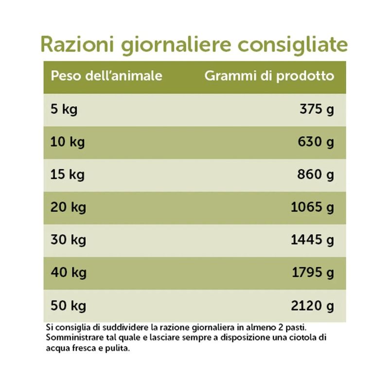 • Monoproteico, con capra, maiale, manzo o tacchino.