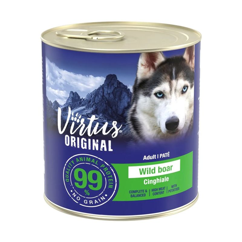 Kit Risparmio 12x800G Virtus New Formula Dog Lattina è un alimento umido completo e bilanciato in lattina appositamente formulato per soddisfare le esigenze nutrizionali dei cani adulti di tutte le taglie e razze, offrendo loro un pasto che delizia il palato e promuove la salute. Confezionato con cura e attenzione, offrendo pregiati paté preparati con proteine selezionate di primissima qualità e senza compromessi sulla purezza e sulla sicurezza. Realizzato con ingredienti di prima qualità e selezionate carni di prima scelta, questi paté sono un'autentica esperienza gastronomica per il tuo cane. Questo alimento senza cereali, conservanti, aromatizzanti artificiali e OGM contiene fino al 70% di carne o pesce, garantendo un'eccezionale fonte di proteine complete e di alta qualità, essenziale per mantenere la sua vitalità e il suo benessere.