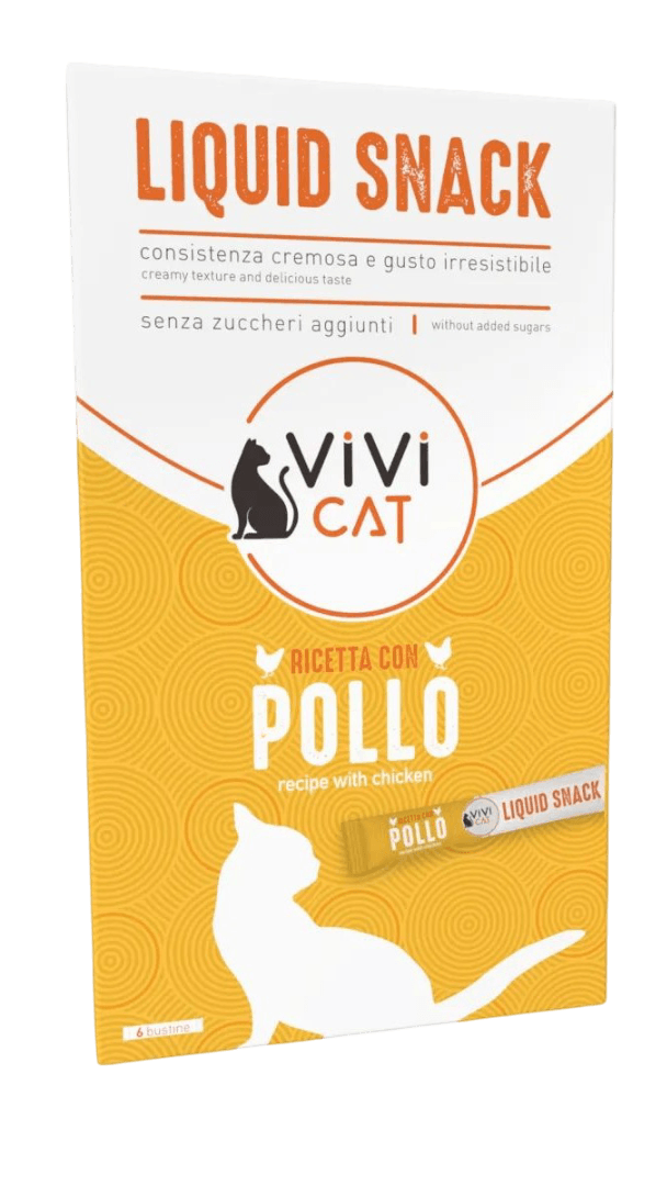 Coccola il tuo gatto con gusto e leggerezza: scegli ora Kit Risparmio 18x15G ViVi Cat Liquid Snack al Pollo e rendi ogni giorno più speciale con un momento tutto per lui!