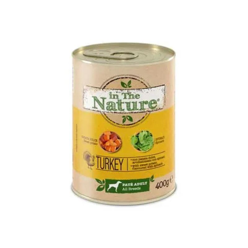 In The Nature Light è un alimento umido completo in lattina, per cani adulti, preparato con cura utilizzando ingredienti attentamente selezionati per garantire una dieta equilibrata al tuo affettuoso compagno peloso. Mentre, gli aminoacidi essenziali, componenti fondamentali delle proteine, sono inclusi per assicurare una dieta completa e equilibrata. Inoltre, l'olio di semi di lino è una preziosa fonte di acidi grassi essenziali, in particolare omega 3, noti per il loro ruolo benefico nel supportare le articolazioni, migliorare la salute del pelo e favorire una cute sana e i frutto-oligosaccaridi (FOS) favoriscono una sana digestione, migliorando l'equilibrio del microbiota intestinale e contribuendo al benessere generale del vostro animale. Grazie alla percentuale ridotta di oli e grassi, con orzo integrale, fonte di fibre per favorire il transito intestinale e Thè Verde con proprietà antiossidanti.