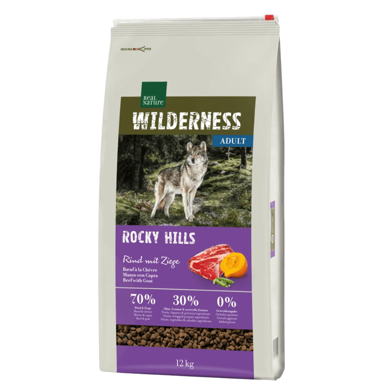 Approfitta del Kit Risparmio 2x12KG Real Nature Dog Adult Wilderness Rocky Hills, un'opzione conveniente per offrire al tuo cane adulto una dieta sana, naturale e bilanciata, ricca di proteine di alta qualità e senza cereali, ideale per la sua salute e benessere a lungo termine.