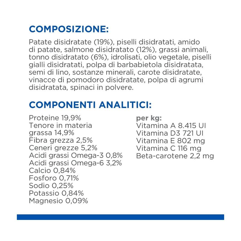 • Con gli Omega-3 e gli Omega-6 per la cura del manto.