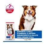 Kit Risparmio 2x14KG Hill's Science Plan Medium Mature Adult 7+ Dog è un cibo secco formulato per soddisfare i fabbisogni nutrizionali ed energetici del cane anziano di taglia media dai 7 anni, tra gli 11 e i 25 kg di peso, al gusto pollo o agnello con riso, favorisce l'assunzione ottimale dei nutrienti e apporto bilanciato di minerali oltre che favorire la salute di cuore, reni e vescica. Test nutrizionali hanno dimostrato che Hill's Dog è un alimento secco facilmente digeribile, altamente appetibile: il tuo amico a quattro zampe ne rimarrà deliziato e imparerà ad amarlo! Le crocchette di cibo secco contengono, tra gli altri ingredienti, preziosi semi di lino, per una pelle sana e pelo lucente. La conservazione avviene in maniera del tutto naturale, con l'impiego di Vitamina E e Vitamina C. Hill's Science Plan contiene proteine provenienti da ingredienti di pregiata qualità e facile digestione, importantissime per l'energia del tuo cane e il supporto della massa muscolare. Inoltre contiene riso, come fonte energetica facilmente digeribile. Sono anche presenti alti tenori di acidi grassi essenziali Omega-3 e Omega-6 per una pelle sana e un pelo lucido. Contiene L-carnitina e proteine di alta qualità per muscoli magri e per continuare a muoversi in modo attivo. Hill's Science Plan è privo di conservanti, coloranti e aromi artificiali, senza frumento, prodotti caseari o altri ingredienti che potrebbero provocare reazioni allergiche. Gli ingredienti pregiati e facilmente digeribili ne fanno un cibo con valore nutrizionale ben più alto rispetto a quello di altri mangimi.