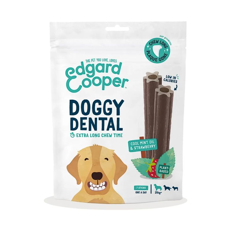 Offri al tuo cane una bocca sana e fresca con il Kit Risparmio 2x240G Edgard & Cooper Snack Doggy Dental Large: uno snack naturale che si prende cura della sua igiene orale con gusto e freschezza!