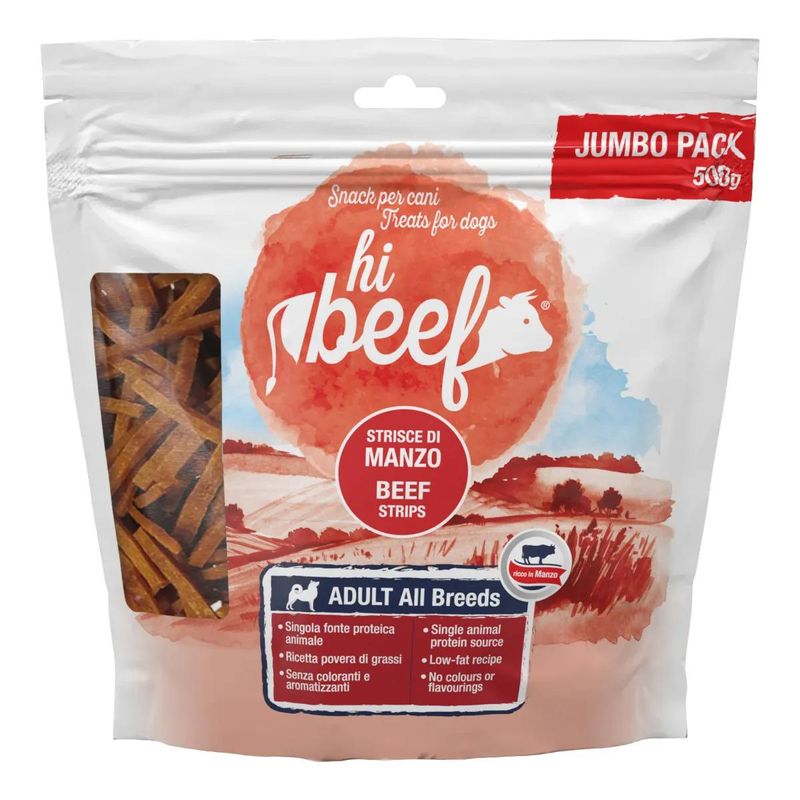 Il Kit Risparmio 2x500G Hi Beef Dog Snack Strisce Manzo è un delizioso fuori pasto da poter offrire al tuo amico peloso ogni qualvolta che ne ritieni necessario. Lo snack prelibato è costituito da gustose e morbide strisce di manzo formulate con un'unica proteina animale, preparato con ingredienti di alta qualità. Gli ingredienti sono di ottima scelta infatti questi snack sono privi di coloranti, aromatizzanti, zuccheri aggiunti. Questo snack è perfetto come premio o come spuntino tra un pasto e l’altro.