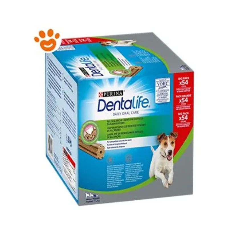 Trasforma la routine quotidiana in un momento di salute e gusto: con Kit Risparmio 108PZ Purina Dentalife Snack Cane Small, un sorriso sano è a portata di zampa!