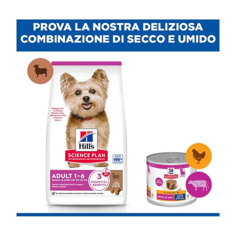 Kit Risparmio 2x6KG Hill's Science Plan Small Mini Adult Dog si rinnova con nuovo pack e nuova formulazione. Potresti ricevere il nuovo o il vecchio pack in base alle disponibilità a magazzino.