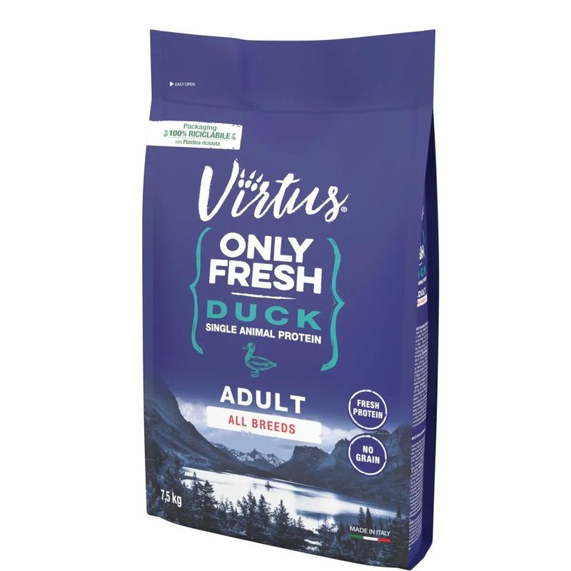 Virtus Dog Adult Only Fresh è un alimento secco completo e bilanciato, appositamente formulato per soddisfare le esigenze nutrizionali dei cani adulti di tutte le taglie e razze, offrendo loro un pasto che delizia il palato e promuove la salute.