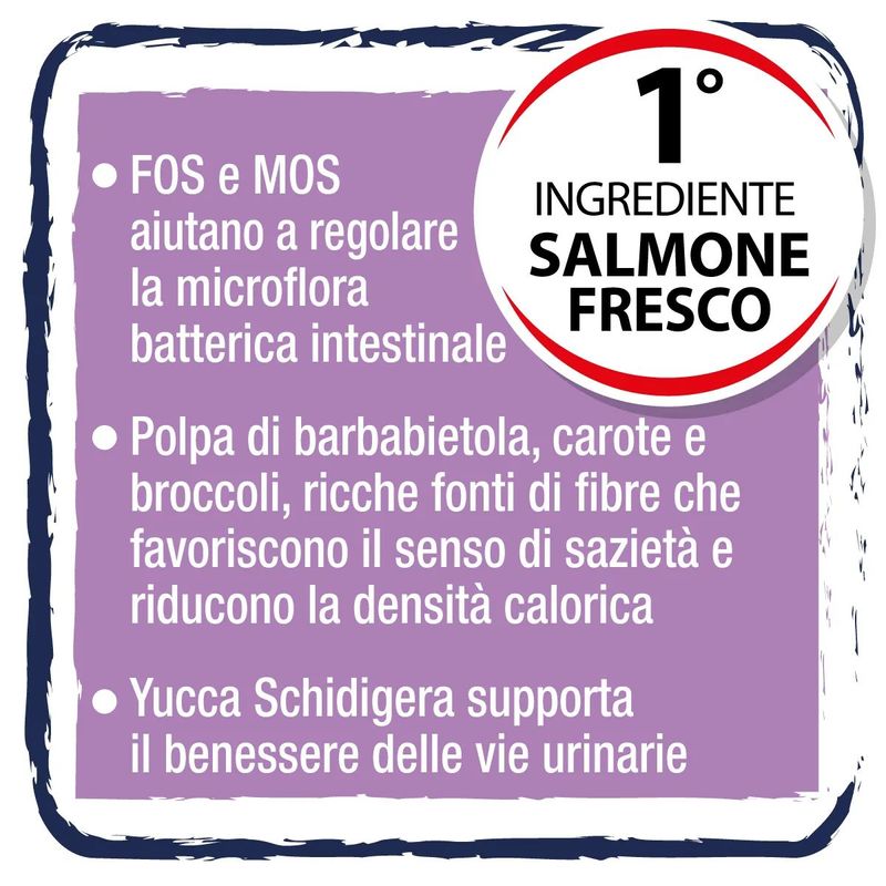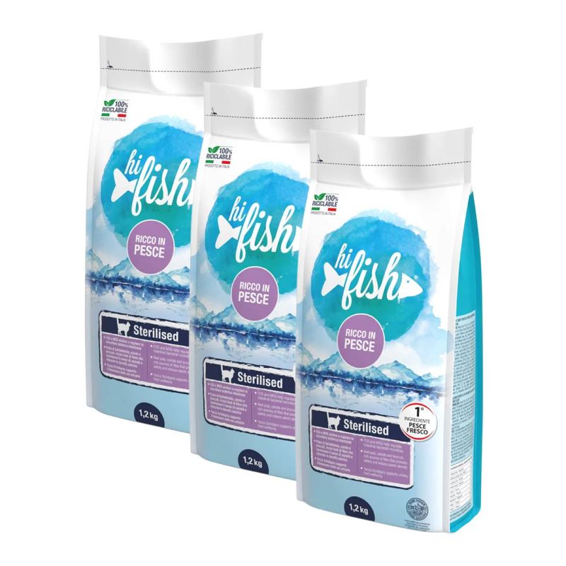 Hi Fish Adult Sterilised Pesce è un'opzione nutrizionalmente completa e altamente adatta a gatti adulti sterilizzati, che soddisfa tutti i fabbisogni energetici, tenendo conto della tendenza al sovrappeso comune nei gatti sterilizzati, dovuta alla ridotta attività motoria post-sterilizzazione. I felini sterilizzati tendono ad un aumento del peso, infatti il loro reale fabbisogno energetico è del 20-30% inferiore rispetto ai gatti non castrati. La sua formulazione contiene il pesce, come unica fonte di proteina animale, come carne magra a basso contenuto di grassi, appositamente formulato per garantire una corretta nutrizione giornaliera, fornendo un'alternativa gustosa e bilanciata per soddisfare il palato e le necessità nutrizionali dei felini adulti.