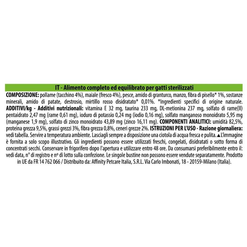 alimento umido in busta formulato con ingredienti naturali per soddisfare le esigenze specifiche dei