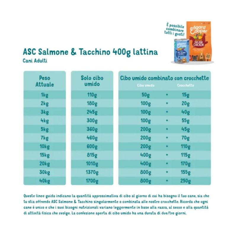 N.B. Il kit contiene 6 lattine da 400G nei gusti a scelta tra: Agnello e Manzo, Manzo, Pollo e Tacchino, Salmone e Tacchino, Selvaggina e Anatra.