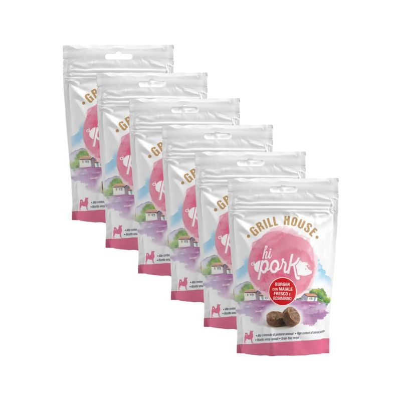 Il Kit Risparmio 6x60G Hi Pork Dog Snack Burger è un delizioso snack che contiene maiale fresco come fonte proteica di alta qualità. Questo prodotto è un delizioso fuori pasto da poter offrire al tuo amico peloso ogni qualvolta che ne ritieni necessario. Delizioso snack senza cereali, senza conservanti e coloranti artificiali, dalla forma di mini burger. Prodotti in Italia, ideali come gustosa ricompensa tra un pasto e l’altro. È lo snack ideale per soddisfare il naturale bisogno di masticazione del tuo dolce amico Fido. Questo snack è perfetto come premio o come spuntino tra un pasto e l’altro.