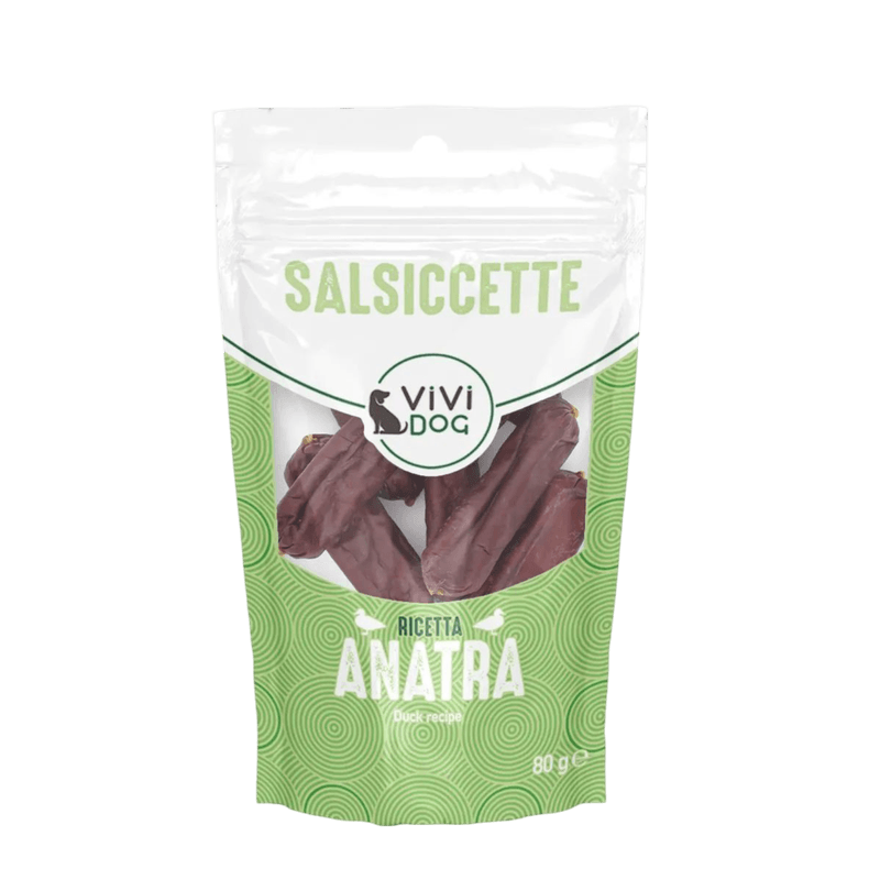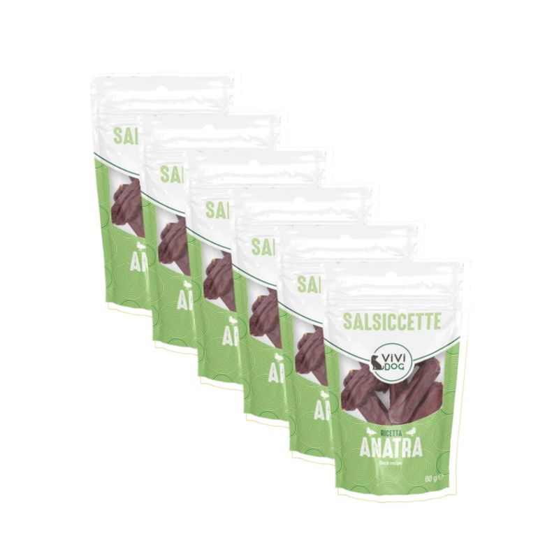 Scegli Kit Risparmio 6x80G ViVi Dog Snack Salsiccette per offrire al tuo cane uno snack delizioso, sano e ricco di nutrienti, perfetto come spuntino o ricompensa quotidiana, con un occhio di riguardo al risparmio.