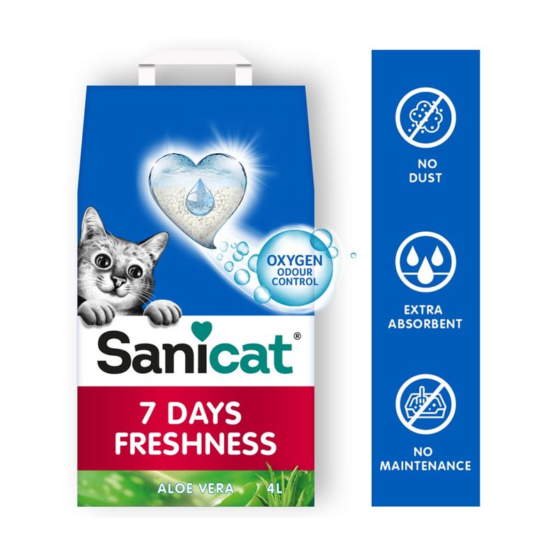 Sanicat Lettiera7 Days Freshness, sabbia per gatti non agglomerante ultra assorbente che tiene pulita la vaschetta della lettiera fino a 7 giorni. Acquista ora!