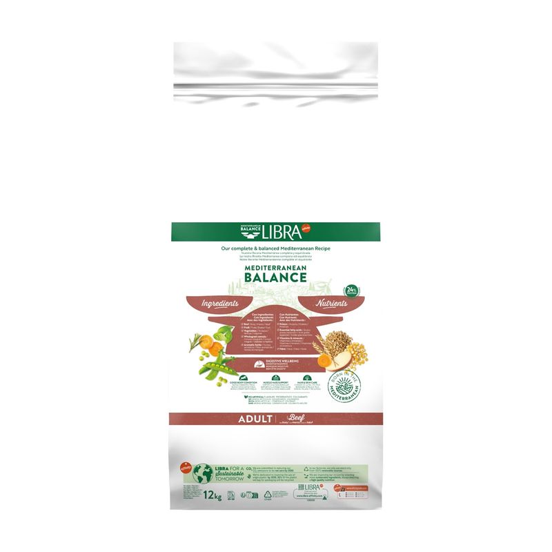 Libra Dog Adult Manzo fa parte della linea Libra Equilibrio Mediterraneo, un’alimentazione pensata per offrire il meglio alla salute e al benessere del tuo cane.