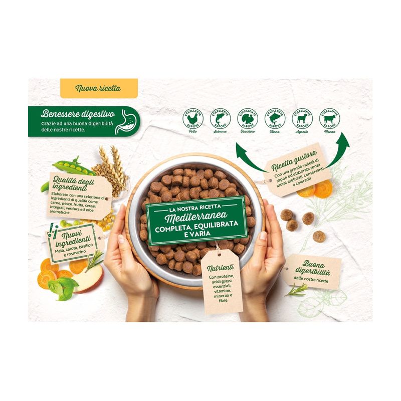 • Alimento secco completo ed equilibrato.