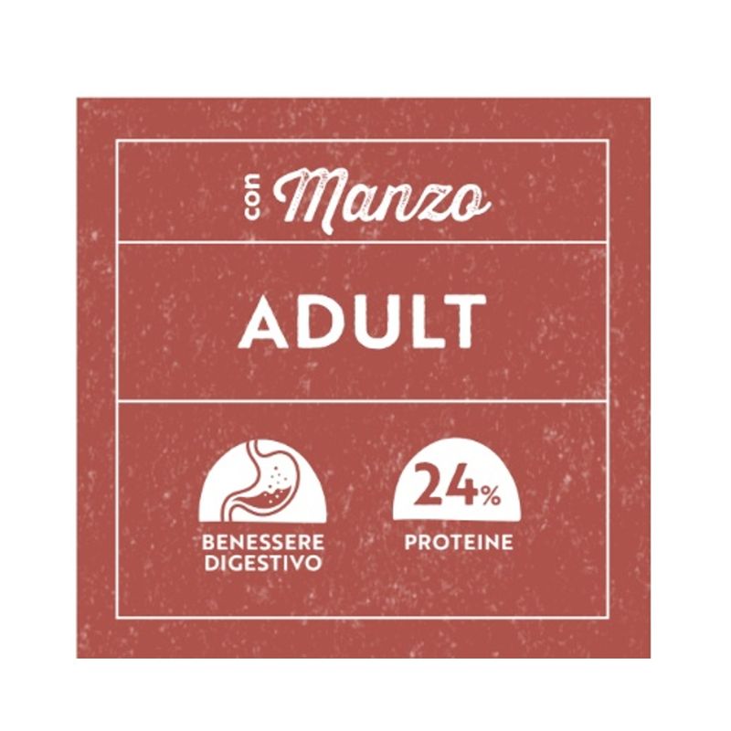 Libra Dog Adult Manzo è un alimento secco completo ed equilibrato per cani adulti che assicura il loro benessere e la loro vitalità. Questo alimento senza aromi artificiali, conservanti o coloranti contiene il manzo come ingrediente principale e fonte di proteina animale di alta qualità, infatti questi croccantini offrono un'ottimale proporzione di proteine, acidi grassi essenziali, vitamine, minerali e fibre, fornendo al tuo cane tutto ciò di cui ha bisogno per mantenere la sua salute e vitalità. Con un contenuto proteico del 24%, questi croccantini aiutano a mantenere una buona muscolatura, supportando il benessere fisico generale del tuo amico a quattro zampe. Inoltre, questi croccantini sono arricchiti con vitamina D e minerali essenziali, che contribuiscono a mantenere denti e ossa forti e sane. Le vitamine A ed E insieme a ferro, zinco, manganese, rame, iodio e selenio supportano ulteriormente la salute complessiva del tuo cane, assicurandoti di fornirgli una nutrizione completa.