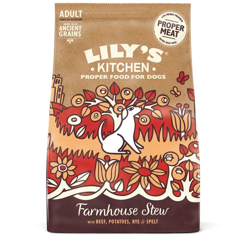 Il saporito e nutriente Lily’s Kitchen Dog Farmhouse Stew è un alimento completo che porta il calore della campagna direttamente nella ciotola del tuo cane. Fa parte della categoria alimento secco ed è ideale per cani adulti di tutte le taglie, grazie alla sua ricetta ispirata allo stufato rustico fatto in casa. Il protagonista è il manzo fresco, una proteina ricca e gustosa, perfetta per supportare la massa muscolare. Accanto alla carne troviamo patate, fonte di energia facilmente digeribile, e una selezione di grani antichi come segale e farro, che apportano fibre e nutrienti essenziali per una digestione sana e naturale. L’insieme è bilanciato e gustoso, ideale per variare la dieta del tuo cane con ingredienti semplici ma nutrienti. Come in tutte le ricette del brand, anche qui trovi solo ingredienti naturali, senza farine di carne, coloranti o conservanti.