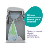 Litter Genie Easy Roll Bidone Igienico è la soluzione ideale per gestire la lettiera del tuo gatto in modo igienico, pratico e senza cattivi odori. Questo sistema avanzato ti consente di raccogliere facilmente i bisogni del tuo gatto, sigillarli e conservarli nel bidone fino a 8 giorni, senza dover portare ogni volta i rifiuti nel bidone della spazzatura. Dotato di ampia apertura di smaltimento, rende le operazioni quotidiane ancora più semplici e pulite, riducendo i residui attorno alla lettiera. Il coperchio a chiusura ermetica e la pellicola multistrato con tecnologia barriera anti-odore bloccano efficacemente gli odori sgradevoli, migliorando l’igiene dell’ambiente domestico. Le ricariche Easy Roll contengono 24 sacchetti pretagliati su un rotolo e durano fino a 3 mesi per un gatto, offrendo un’alternativa comoda e sostenibile rispetto ai tradizionali sacchetti usa e getta. Inoltre, il bidone è realizzato in plastica riciclata al 99%, una scelta ecologica per i proprietari più attenti all’ambiente.