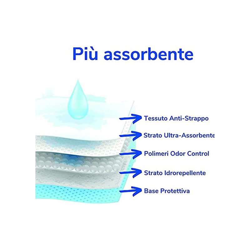 Tappetini Igienici 60x90CM sono appunto dei tappetini igienici per cani. Sono realizzati con cinque strati anti-strappo e con l’avanzata tecnologia dei polimeri antibatterici super assorbenti per trattenere rapidamente l’umidità e l’odore della pipì o delle feci più liquide, lasciando la superficie e le zampine del tuo peloso sempre asciutte e pulite. I 5 strati di cui sono costituiti i tappetini igienici sono: tessuto antistrappo, strato ultra-assorbente, polimeri controllo degli odori, strato idrorepellente e base protettiva. Ha una trama a nido d’ape per una migliore assorbenza.