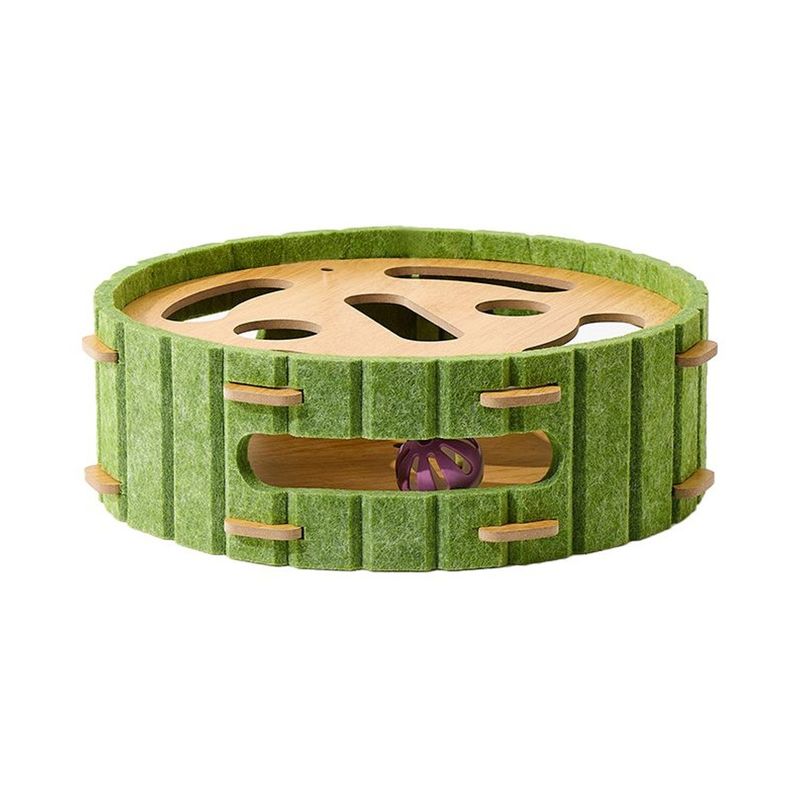 La Lovedì Gioco Gatto Puzzle City Ruota con Palla è un gioco interattivo e puzzle progettato per gatti di tutte le età, perfetto per stimolare mente e corpo. Questa originale ruota circolare, realizzata in feltro resistente e legno MDF, è dotata di palline interne con suono, che attirano l’attenzione del gatto e lo invitano a colpire, inseguire e tentare di catturare la “preda” attraverso i fori multipli. Il design a più aperture crea una dinamica simile a un puzzle, in cui il gatto deve usare astuzia e abilità per inseguire la pallina e soddisfare il proprio istinto naturale di caccia. Ogni sessione di gioco diventa così una sfida mentale e fisica, utile a ridurre noia e stress, e a mantenere il gatto attivo anche nei momenti di solitudine. Grazie alla scelta di materiali sicuri e durevoli, è adatto anche ai gatti più vivaci e curiosi.