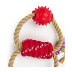 Il Lovedì Gioco Cane Natale Corda Doppio Anello è il compagno ideale per le giornate festive (e non solo!) del tuo cane. Realizzato in robusta corda intrecciata con dettagli in tessuto rosso natalizio e due estremità dotate di anelli in gomma con rilievi massaggianti, questo gioco è perfetto per cani adulti e cuccioli di taglia media e grande. La sua forma a doppio anello permette giochi di trazione interattiva, perfetti sia per il gioco in solitaria sia per il divertimento condiviso. Oltre a favorire l’attività fisica, la particolare texture aiuta a mantenere una buona igiene orale, stimolando le gengive e contribuendo al benessere dentale.