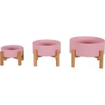 Ciotola per cani e gatti in ceramica di colore Rosa con supporto in bambù ad altezza rialzata. Il prodotto è sollevato da terra grazie alla struttura in legno che conferisce stabilità alle scodelle, evitando spargimenti di cibo e/o liquido sul pavimento. Le alzatine favoriscono anche la postura del tuo animale permettendogli di mangiare più comodamente.
