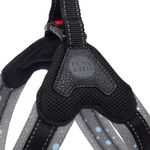 Con Pettorina per Cane Antracite Pois in Plastica, il tuo peloso potrà godersi momenti di sicurezza e divertimento, proprio come gli piace nelle vostre avventure.