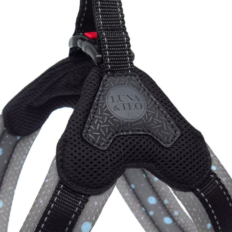 La Pettorina per Cane Antracite Pois in Plastica è la scelta ideale. Realizzata con un morbido tessuto 3D stampato, offre un elevato livello di comfort grazie alla sua trama pregiata, senza compromettere la robustezza. Il tessuto 3D è altamente traspirante, assicurando freschezza e praticità durante l'uso.
